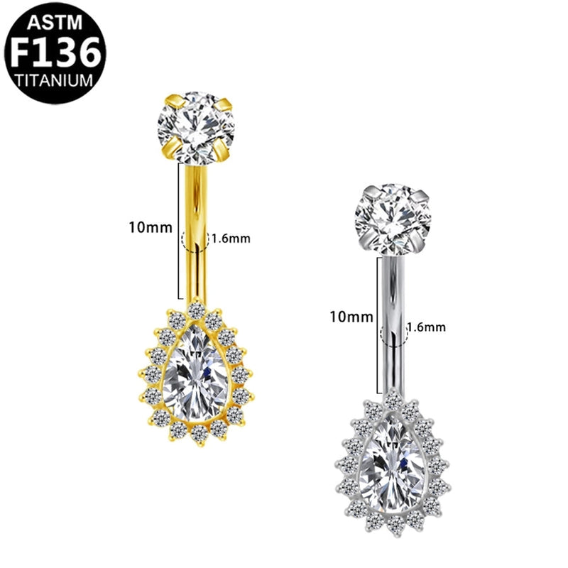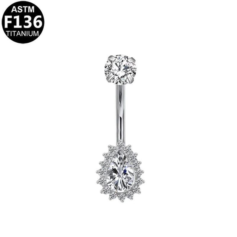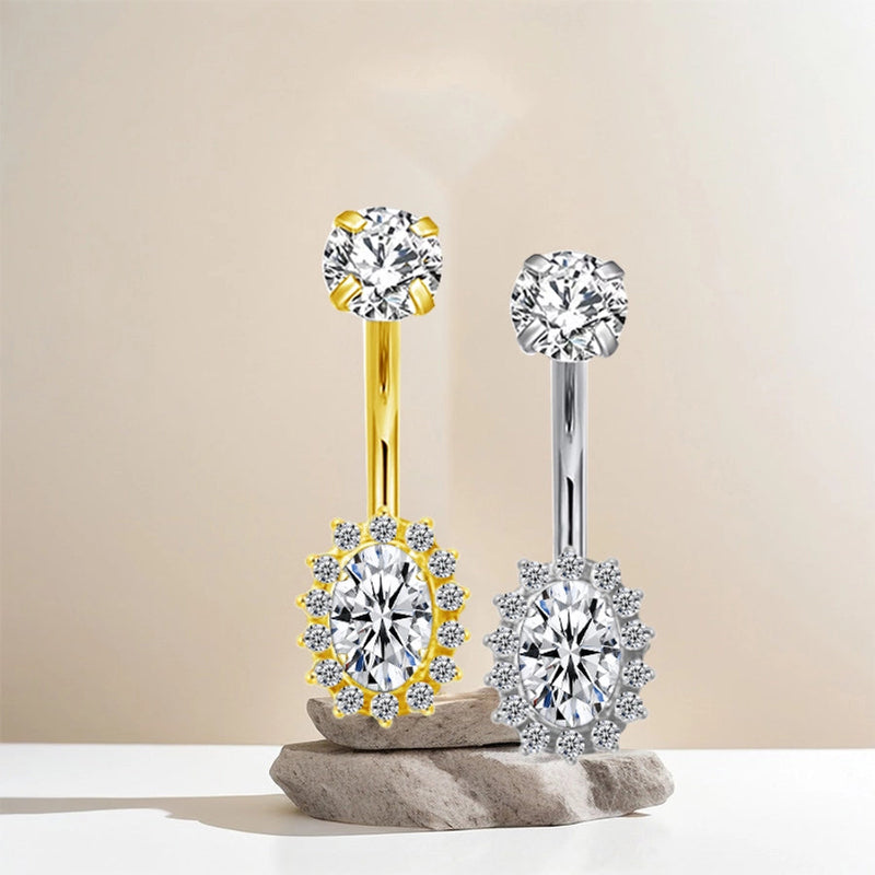 1 Piece Belly Rings Elegant Classic Style Shiny Oval Pure Titanium Titanium Alloy Zircon 14K Gold Plated White Gold Plated