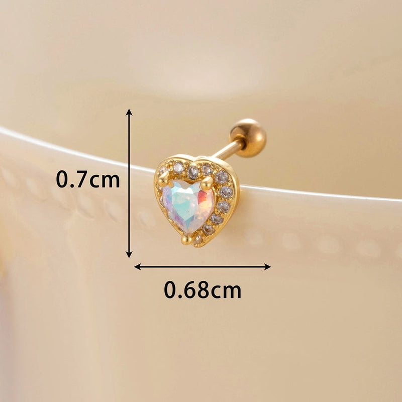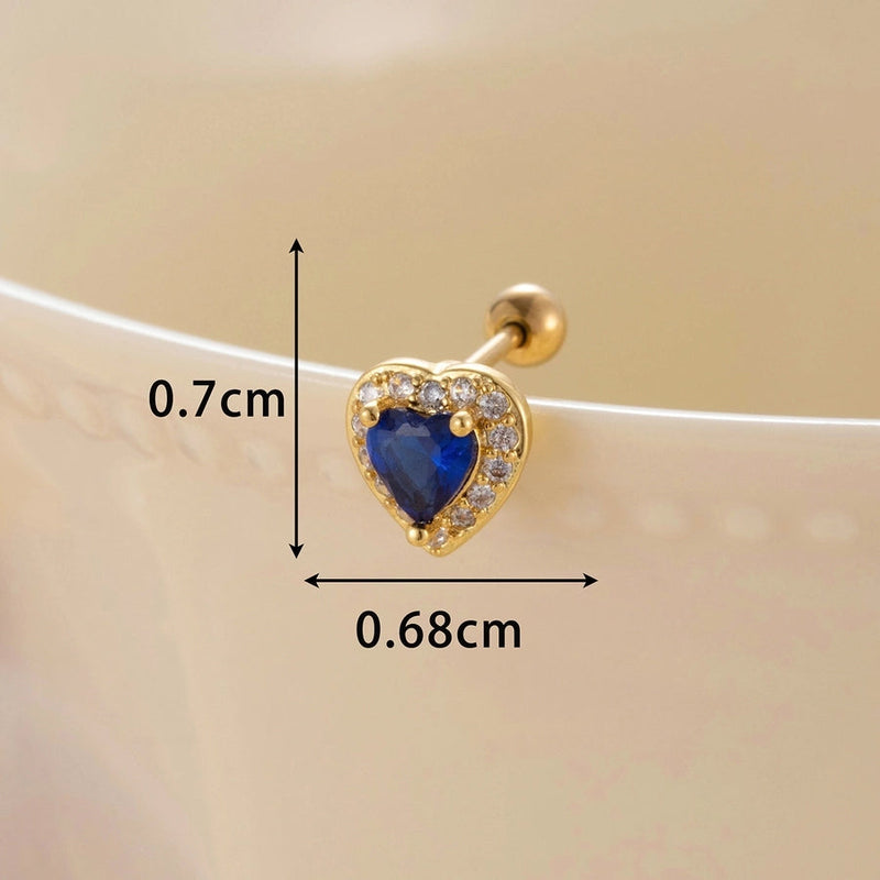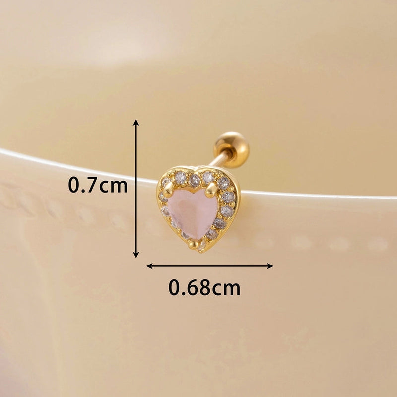 1 Piece Classic Style Heart Shape Inlay Copper Zircon Ear Studs