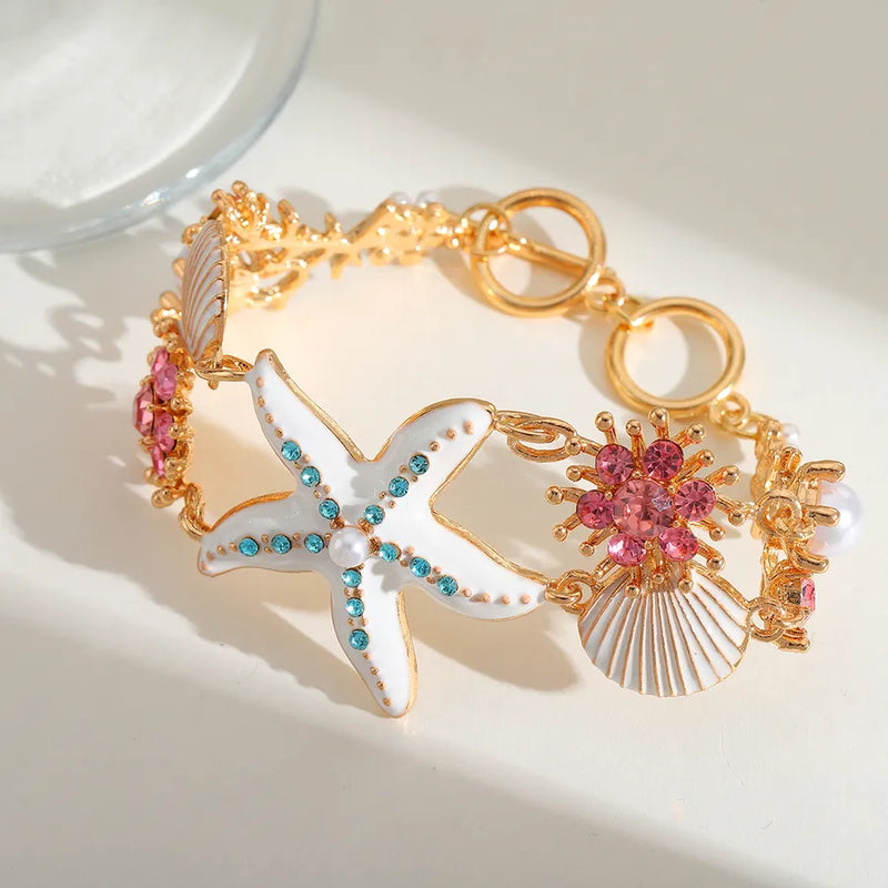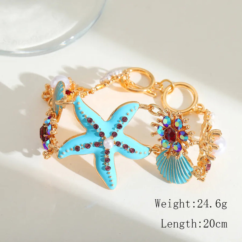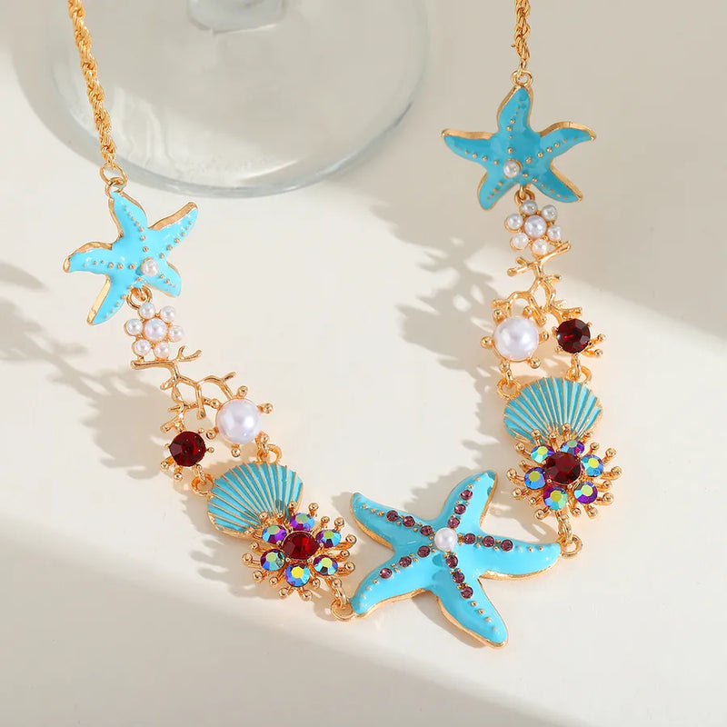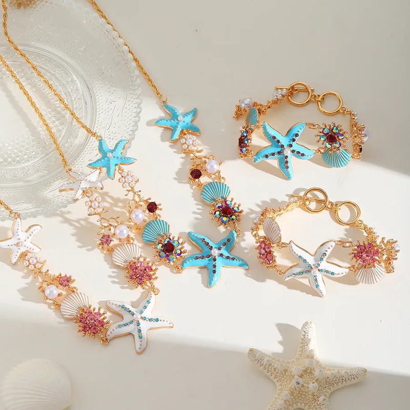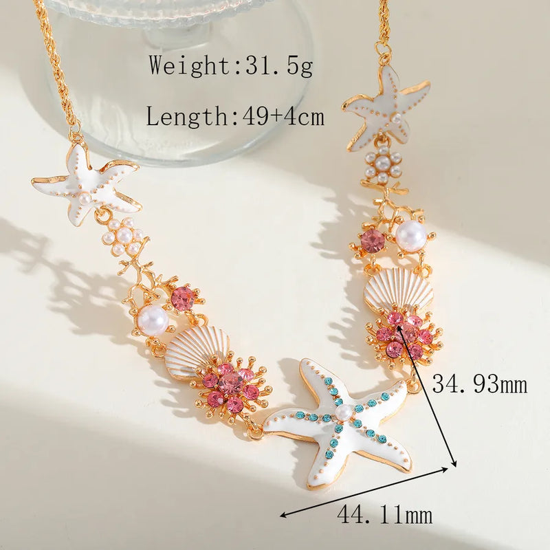 1 Piece Cute Simple Style Artistic Geometric Starfish Flower Alloy Inlay Imitation Pearl Zircon Imitation Gold Women's Twisted Rope Chain Multi Charms Bracelet Multi Charms Necklace