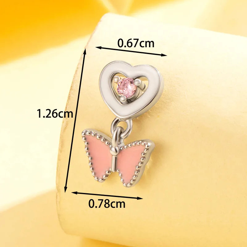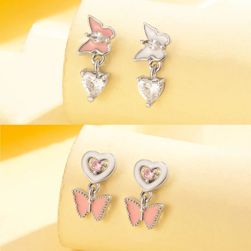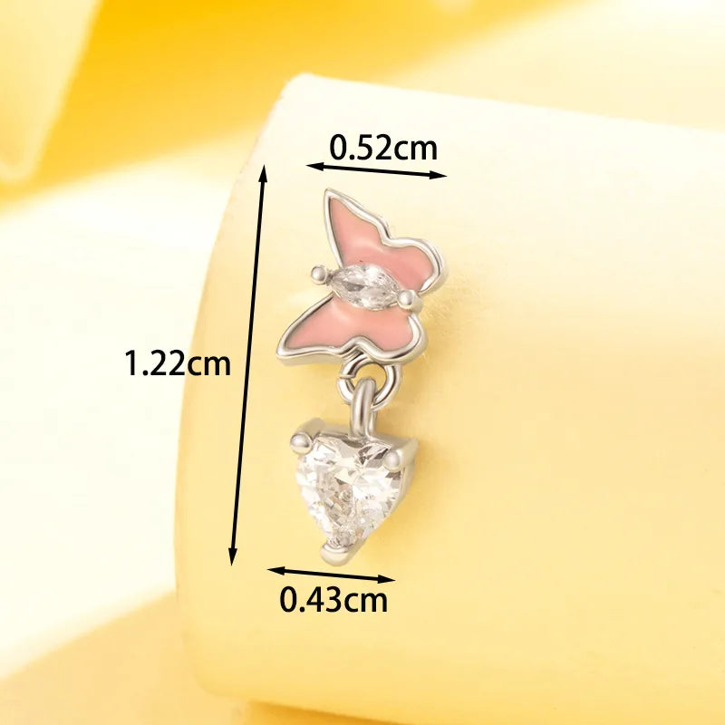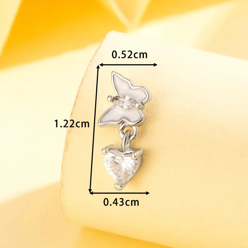 1 Piece IG Style Cute Korean Style Heart Shape Butterfly Heart Butterfly Copper Zircon Ear Studs