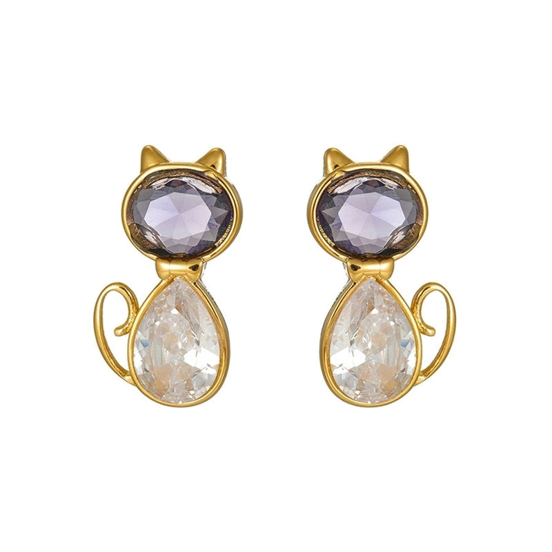1 Piece IG Style Elegant Streetwear Cat Inlay 304 Stainless Steel 18K Gold Plated Ear Studs