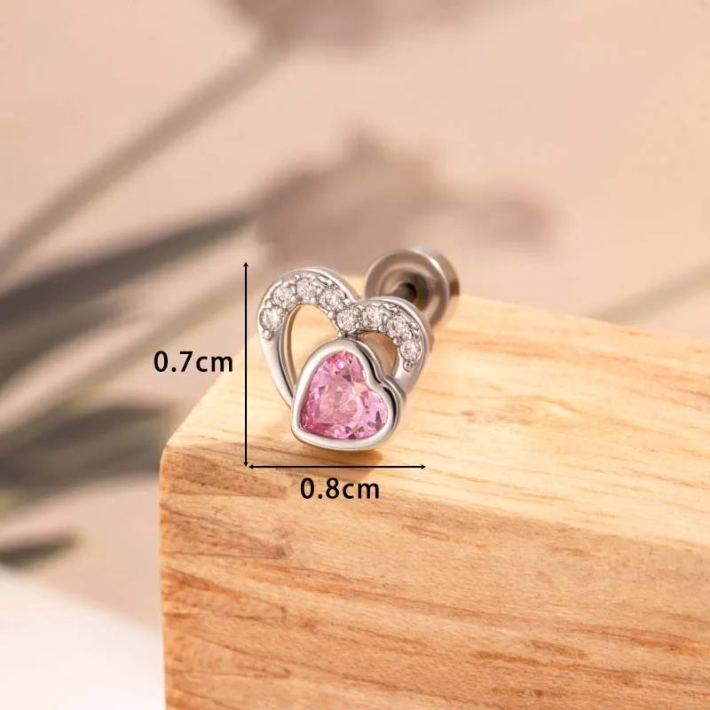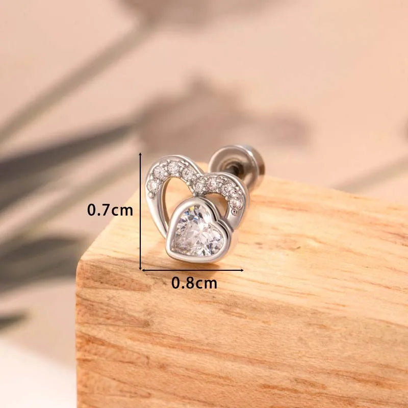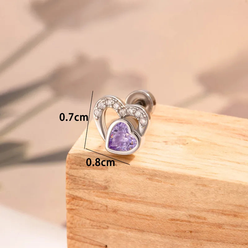 1 Piece IG Style Sweet Korean Style Heart Shape Heart Copper Zircon Ear Studs