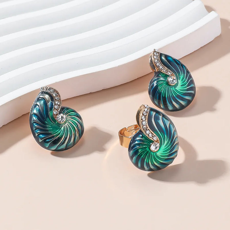 1 Set Vacation Sweet Conch Alloy Rhinestones Women's Rings Earrings