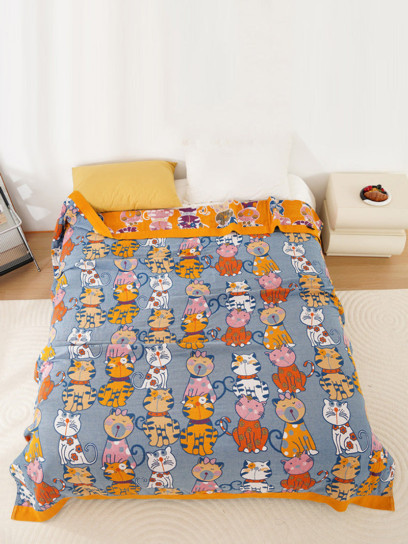 100%Cotton Queen Bedcover Cur Cat Sofa Blanket