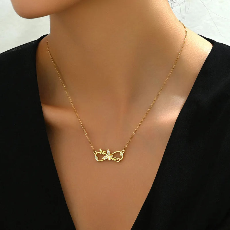 201 Stainless Steel Copper 18K Gold Plated Simple Style Classic Style Commute Inlay Infinity Arrow Butterfly Zircon Pendant Necklace