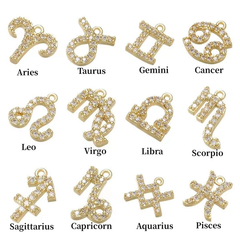 201 Stainless Steel Copper Inlay Constellation Zircon Pendant Necklace