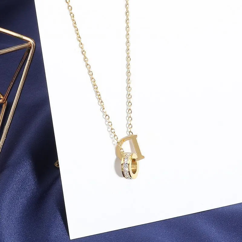 304 Stainless Steel 18K Gold Plated Elegant Lady Simple Style Plating Letter Artificial Rhinestones Pendant Necklace
