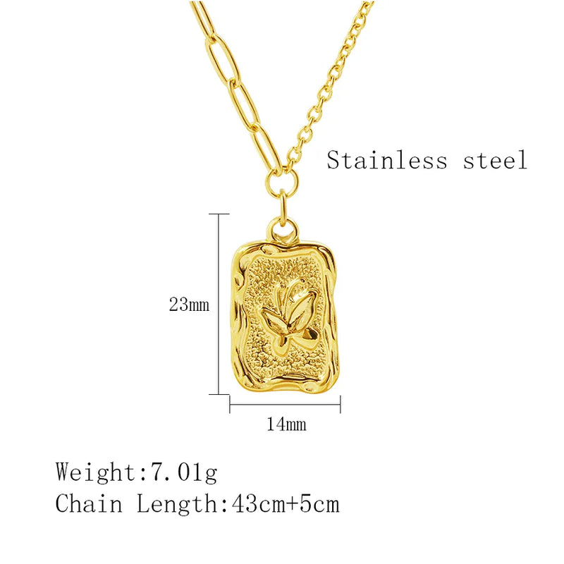 304 Stainless Steel 18K Gold Plated Retro Plating Butterfly Pendant Necklace