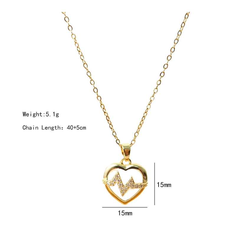 304 Stainless Steel Copper 18K Gold Plated Inlay Heart Shape Zircon Pendant Necklace