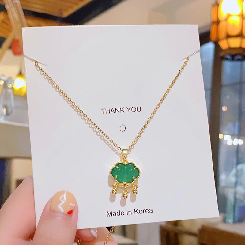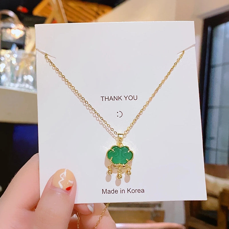 304 Stainless Steel Copper 18K Gold Plated Inlay Lock Glass Zircon Pendant Necklace