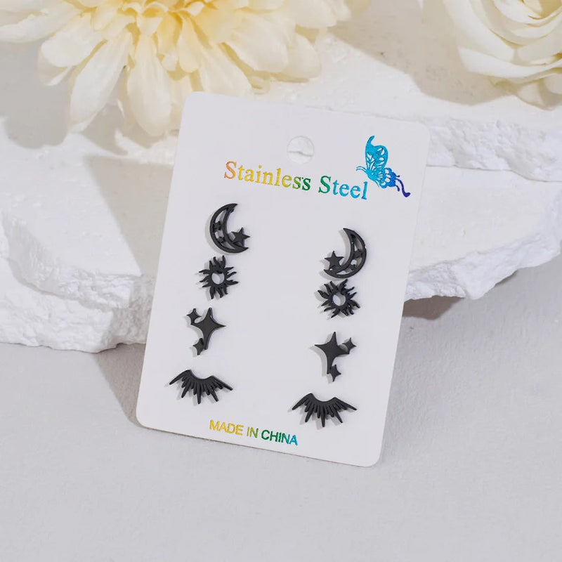 4 Pairs Cute Sweet Commute Sun Star Moon Polishing Hollow Out 304 Stainless Steel 18K Gold Plated Ear Studs