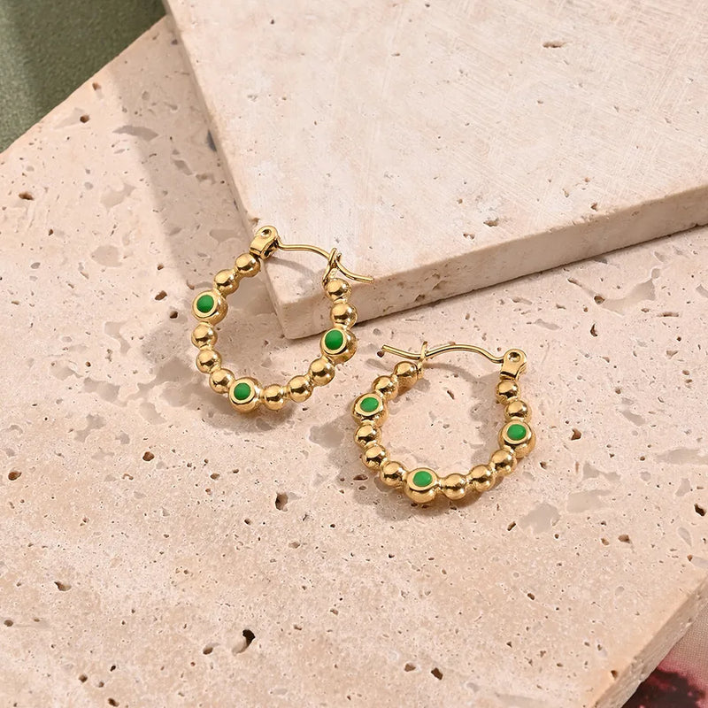 Green Oil Drop O-Shaped Earrings (Gold)