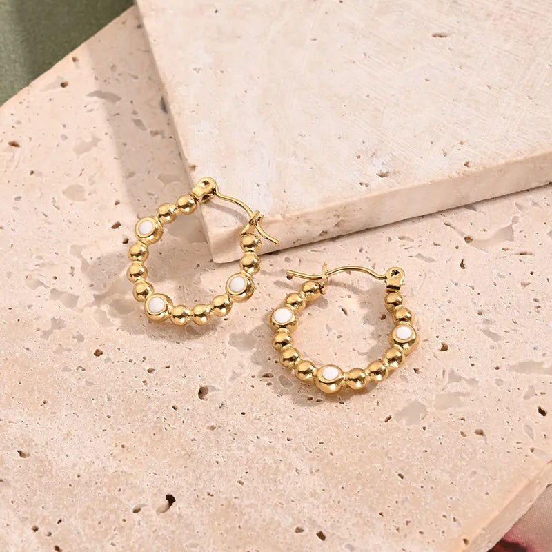 White Oil Drop O-Shaped Earrings (Gold)