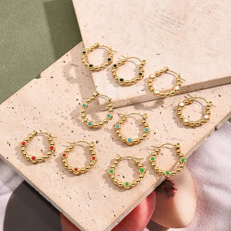 5 Pairs/Package Casual Modern Style Simple Style O-Shape Handmade Polishing Enamel 304 Stainless Steel 18K Gold Plated Earrings