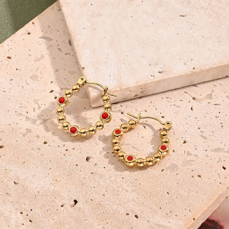 Red Drop Oil O-Shaped Earrings (Gold)
