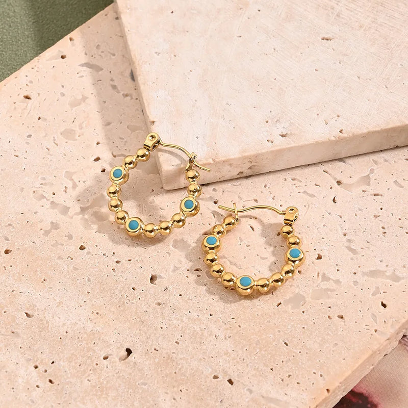 Blue Drop Oil O-Shaped Earrings (Gold)