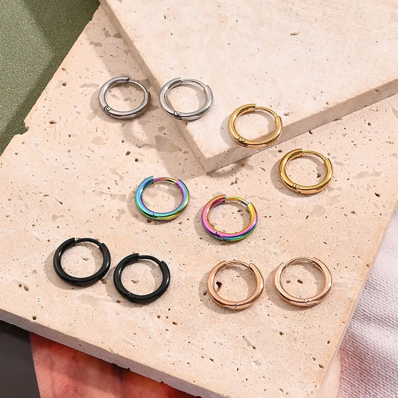 5 Pairs/Package Casual Modern Style Simple Style O-Shape Handmade Polishing Plating 304 Stainless Steel 18K Gold Plated Swimming Black Rose Gold Plated Earrings