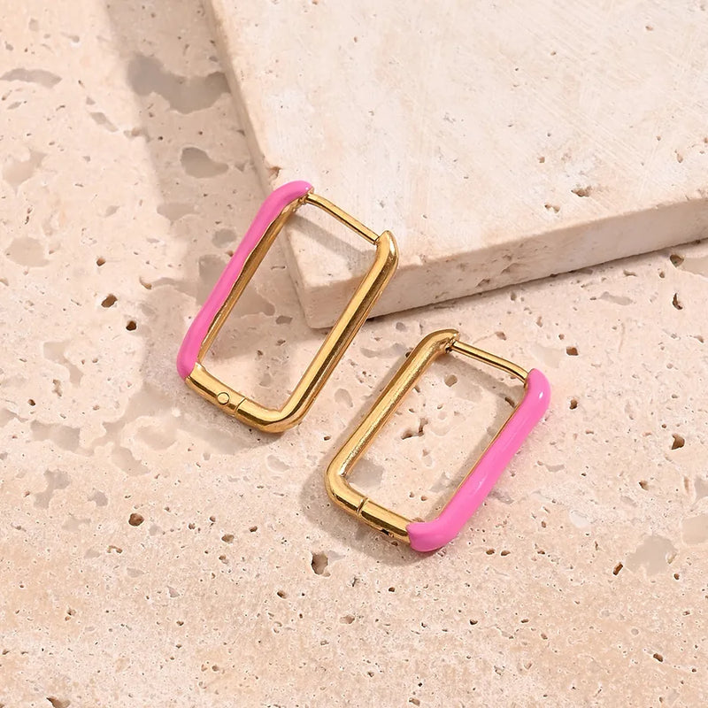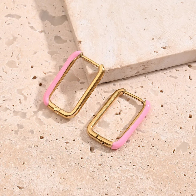 Pink Dripping Oil Rectangular Earrings (Gold)