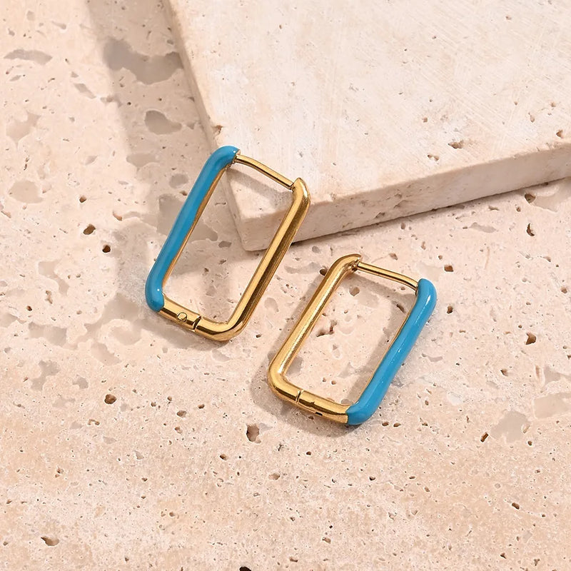 Blue Dripping Oil Rectangular Earrings (Gold)
