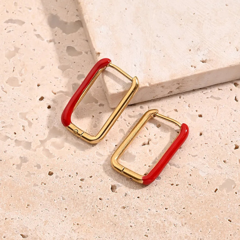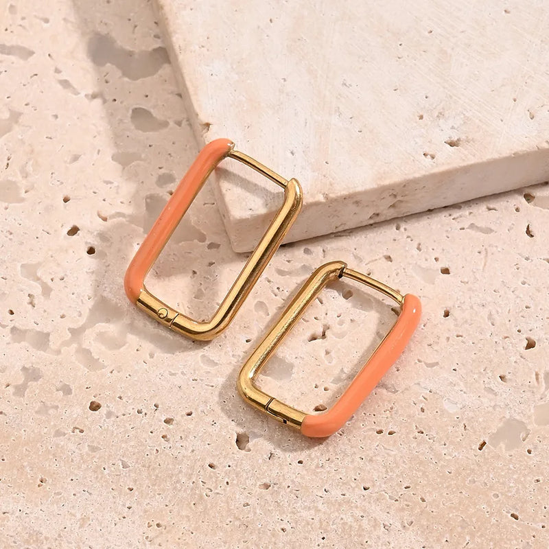 Orange Dripping Oil Rectangular Earrings (Gold)