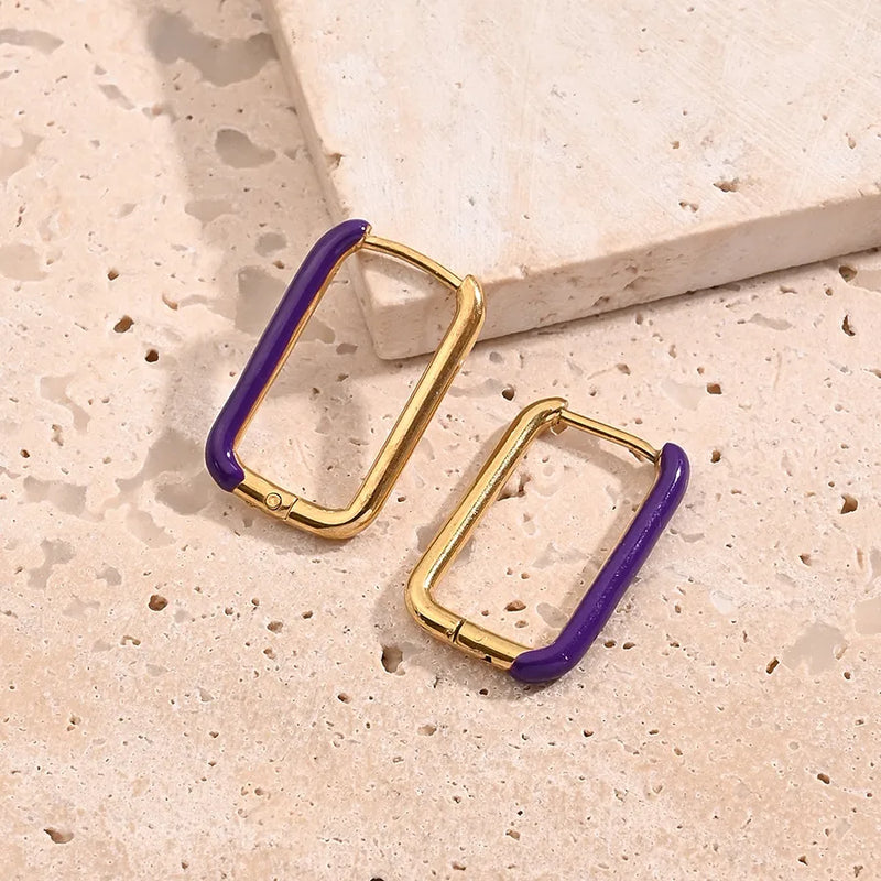 Purple Dripping Oil Rectangular Earrings (Gold)