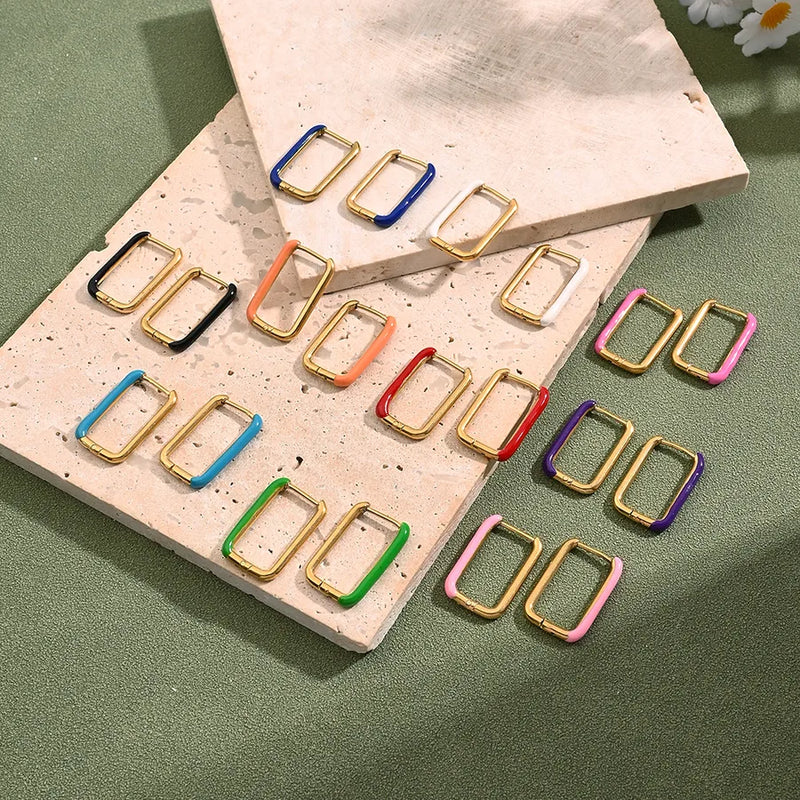 5 Pairs/Package Casual Modern Style Simple Style Rectangle Handmade Polishing Enamel 304 Stainless Steel 18K Gold Plated Earrings