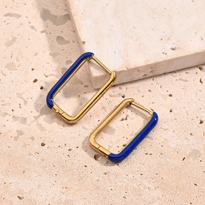 Dark Blue Dripping Oil Rectangular Earrings (Gold)