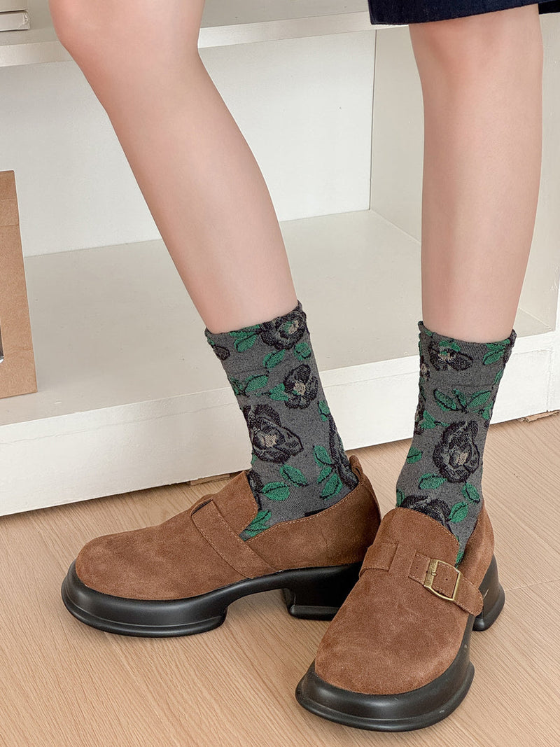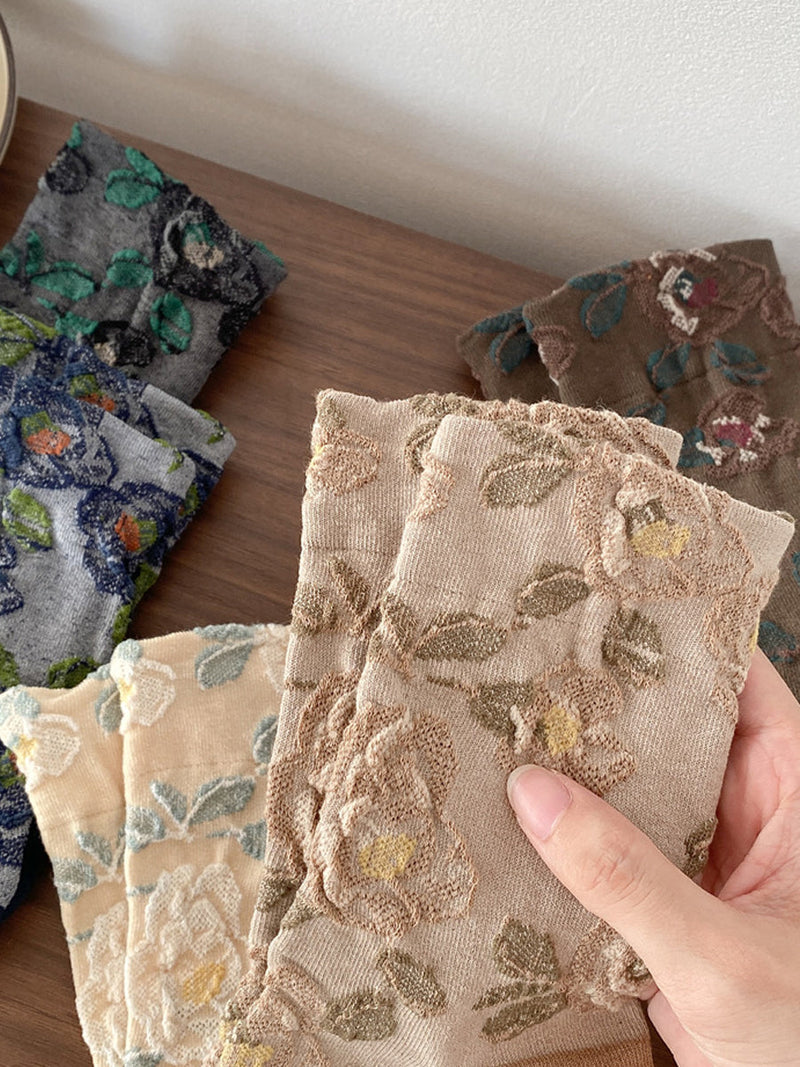 5 Pairs Women Autumn Flower Mid Heel Socks
