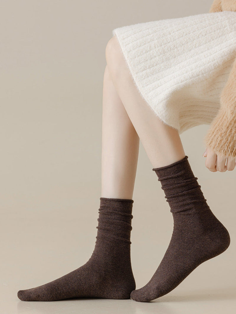 5 Pairs Women Autumn Pure Color Mid Heel Socks