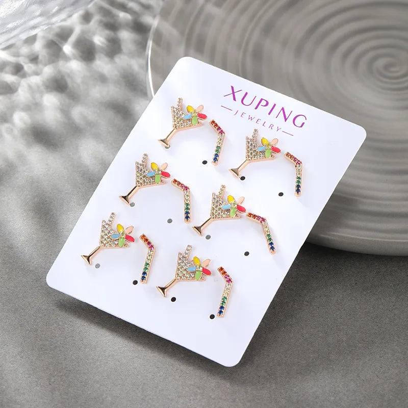 6 Pairs Cartoon Style Cute Sweet Geometric Asymmetrical Plating Copper Zirconia 18K Gold Plated Ear Studs