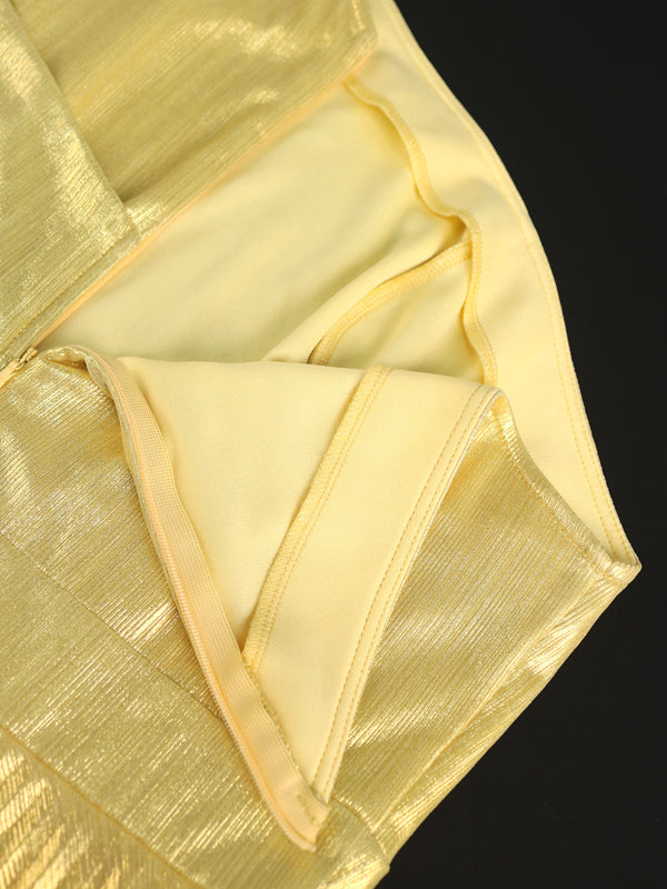 | Feature | Pleated . Asymmetric . Split-joint . Solid Color . Shiny . Zipper |