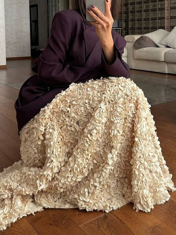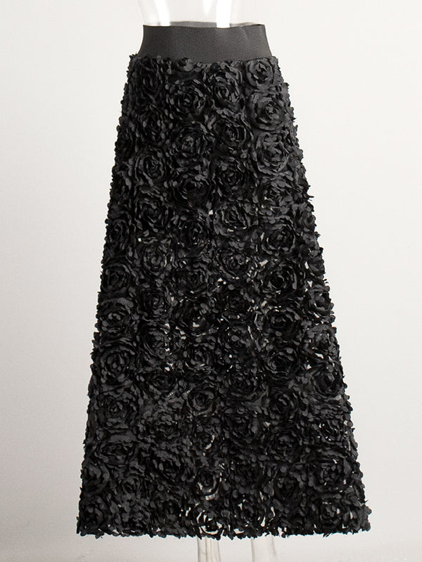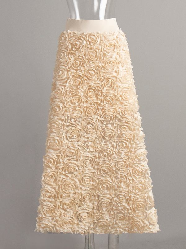 A-Line High Waisted Solid Color Three-Dimensional Flower Skirts Bottoms