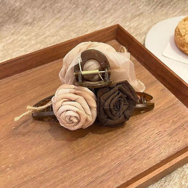 Atmosphere beauty pure desire gentle big flower grip burnt rose new Chinese style niche hand-made Shark clip grip