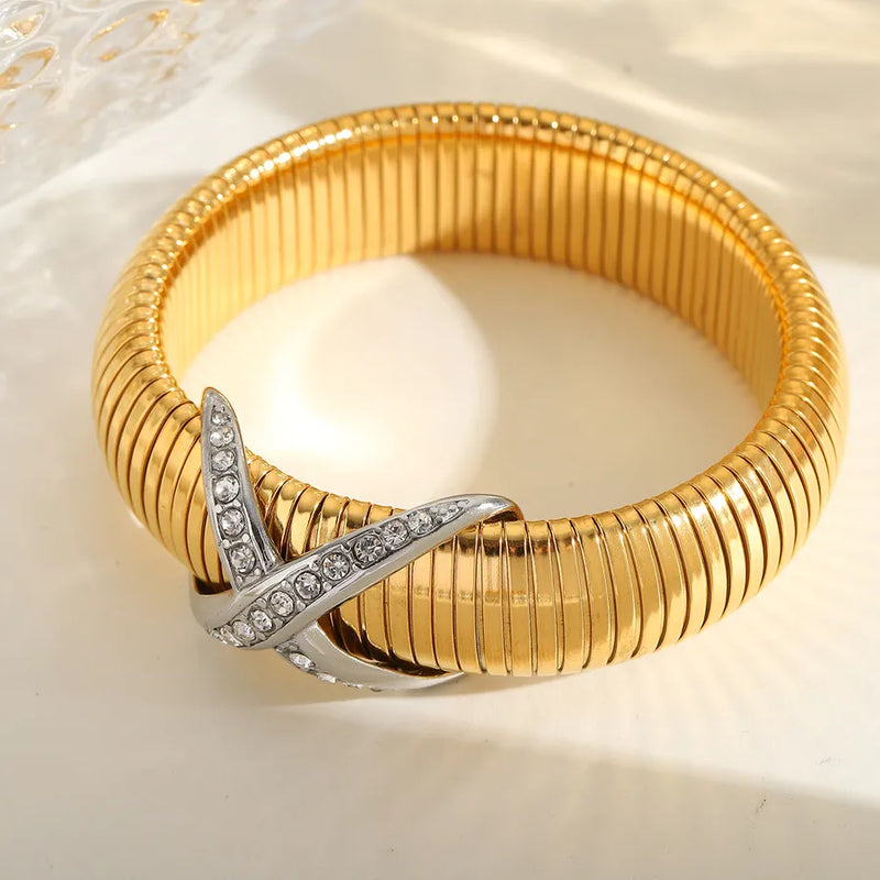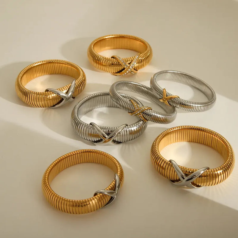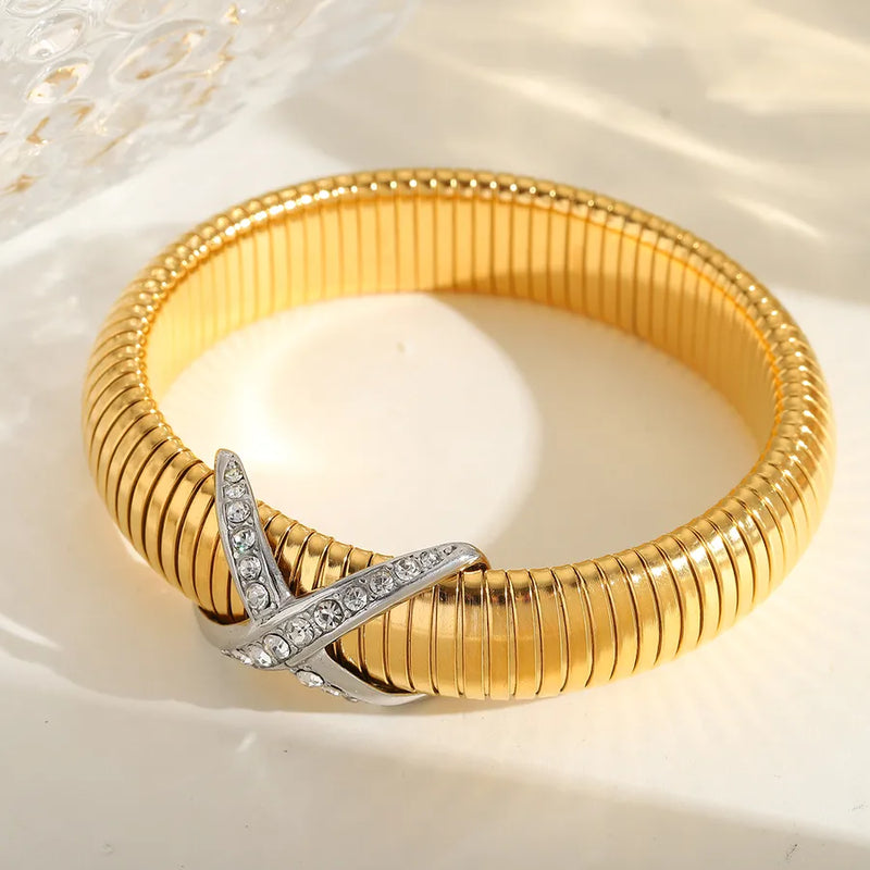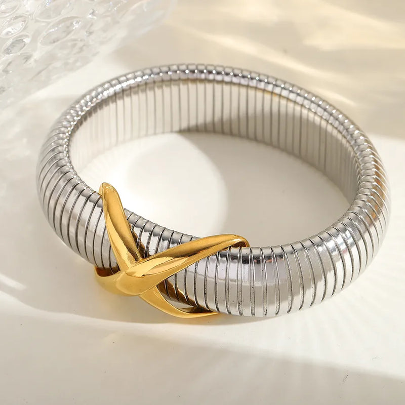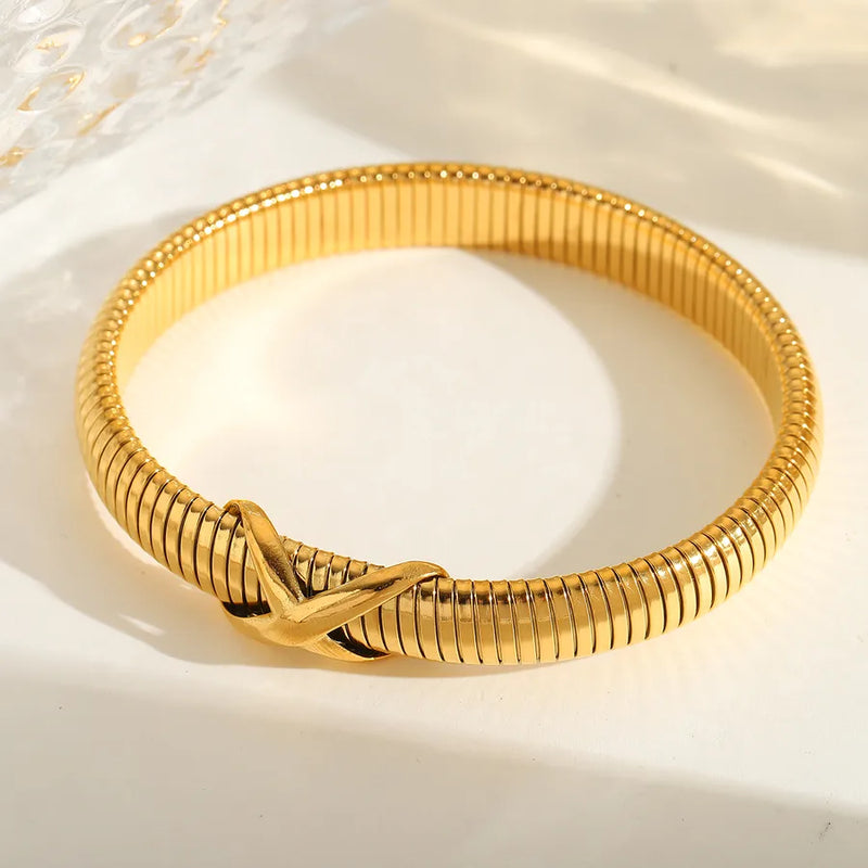 Basic wind Solid Color 304 Stainless Steel 18K Gold Plated Bangle In Bulk