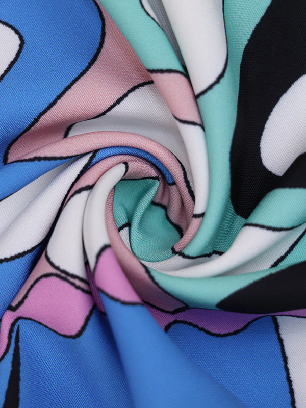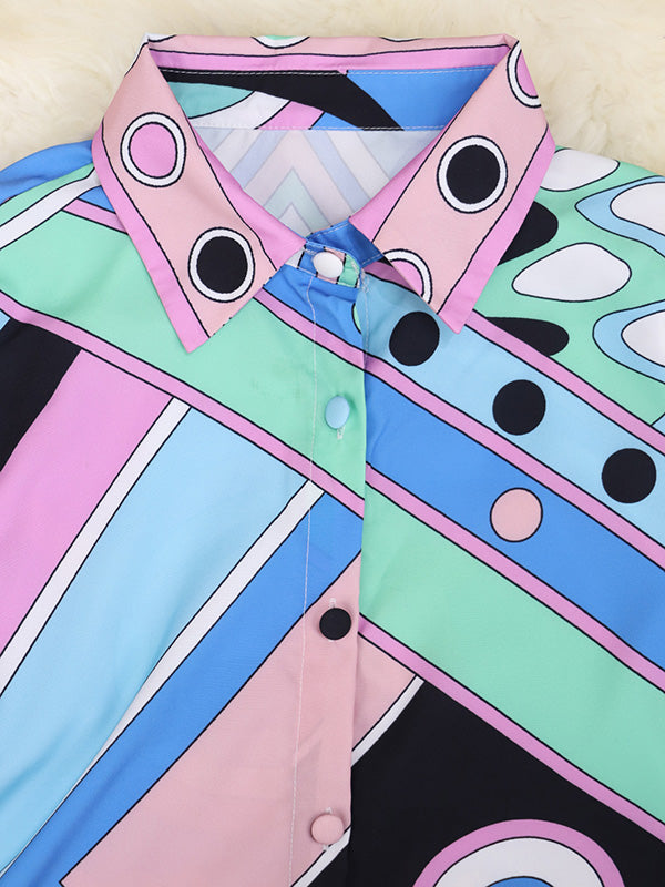 Buttoned Printed Lapel Blouses&Shirts Tops + Bodycon High Waisted Skirts Bottom Two Pieces Set