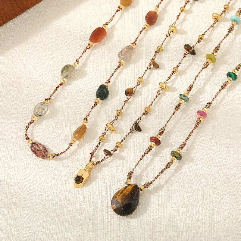 Casual Cute Commute Irregular 304 Stainless Steel natural stone Copper Woven Chain Necklace In Bulk