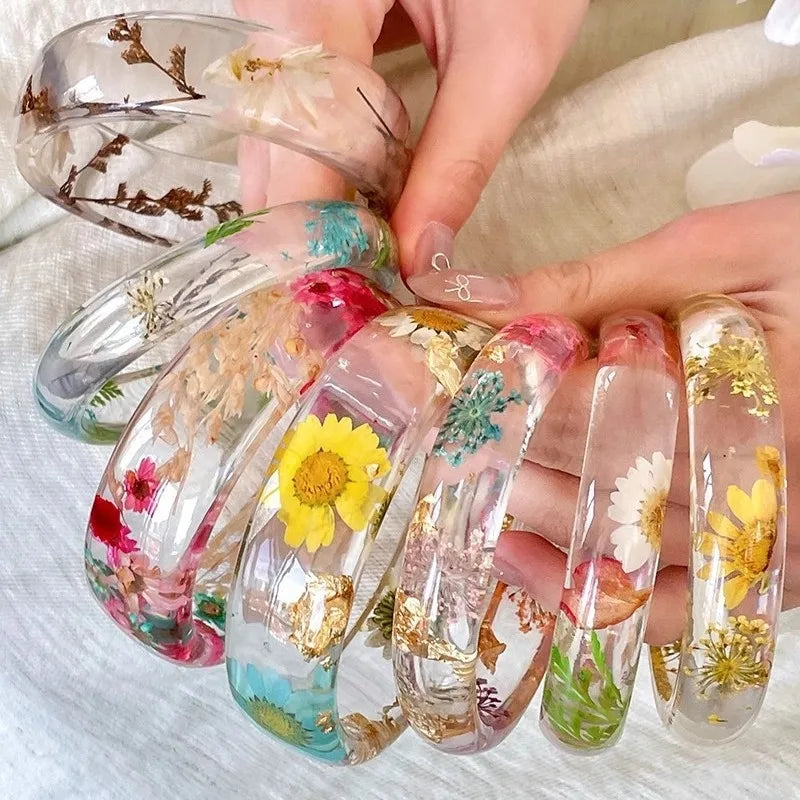 Casual Cute Retro Flower Flowers Resin Bangles Wholesale