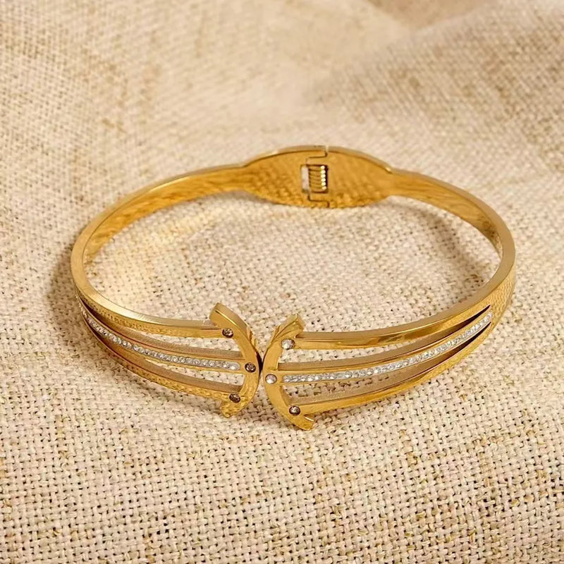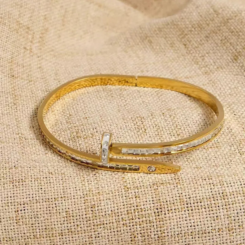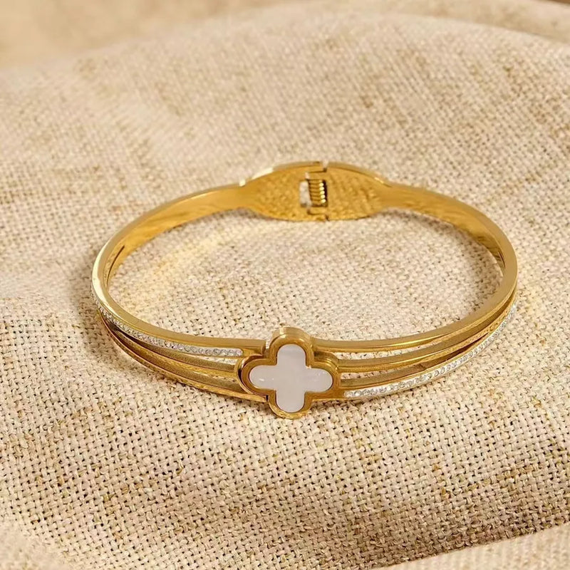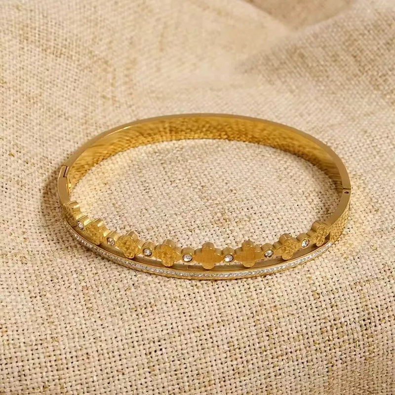 Casual Elegant Simple Style Four Leaf Clover Arc Curved Nail 304 Stainless Steel Zircon Bangle In Bulk