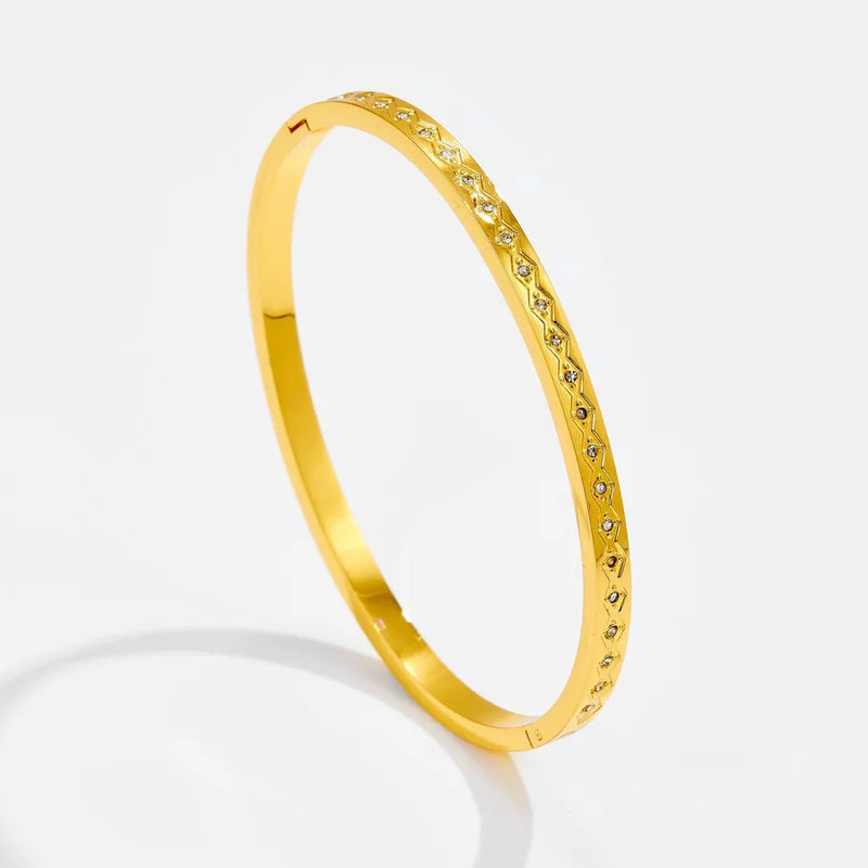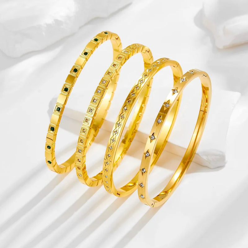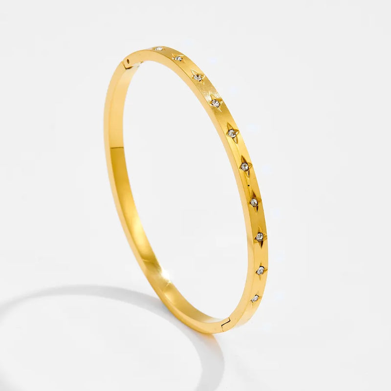 Casual Elegant Star Titanium Steel 18K Gold Plated Rhinestones Bangle In Bulk