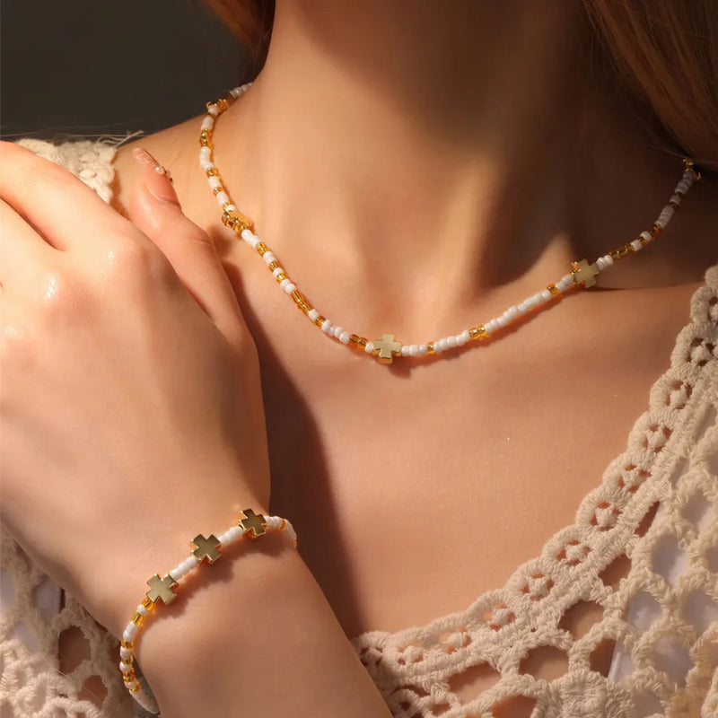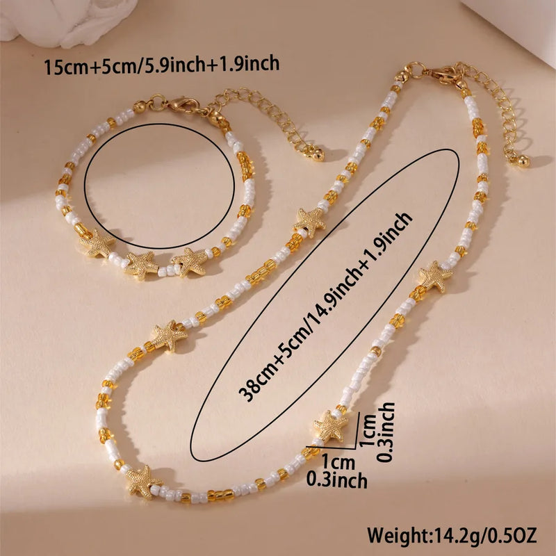 Casual Hawaiian Streetwear Cross Starfish Fish Alloy Women's Beaded Chain Jewelry Set