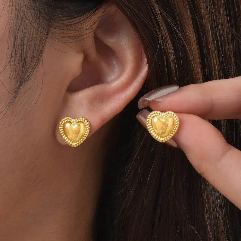 Casual Simple Style Heart Shape Plating 201 Stainless Steel 18K Gold Plated Butterfly Backs Ear Studs