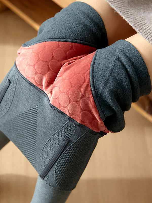 Casual Skinny Leg Velvet Keep Warm Solid Color Thermal Pants Bottoms