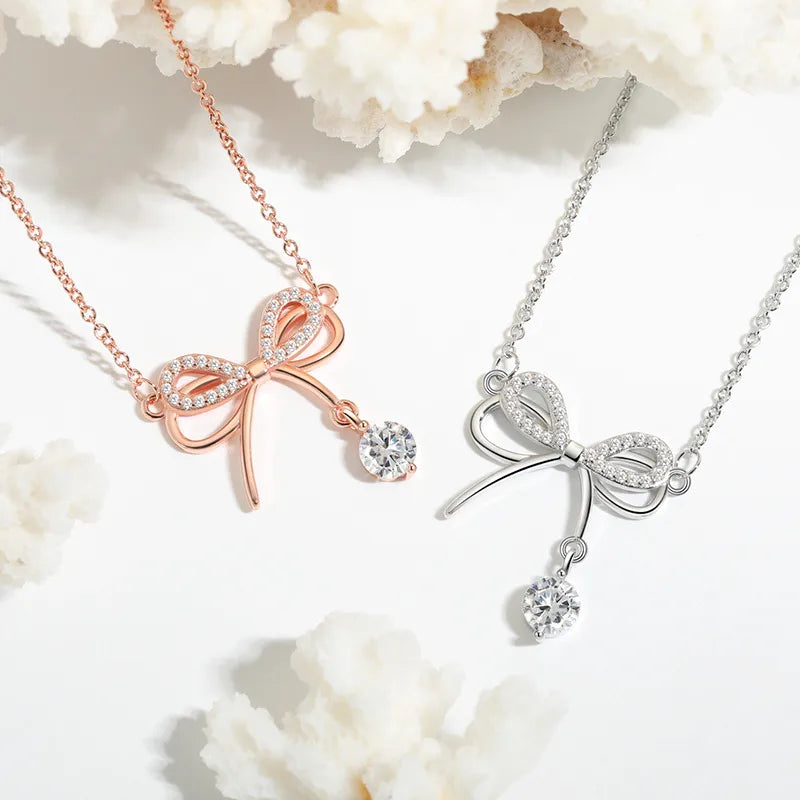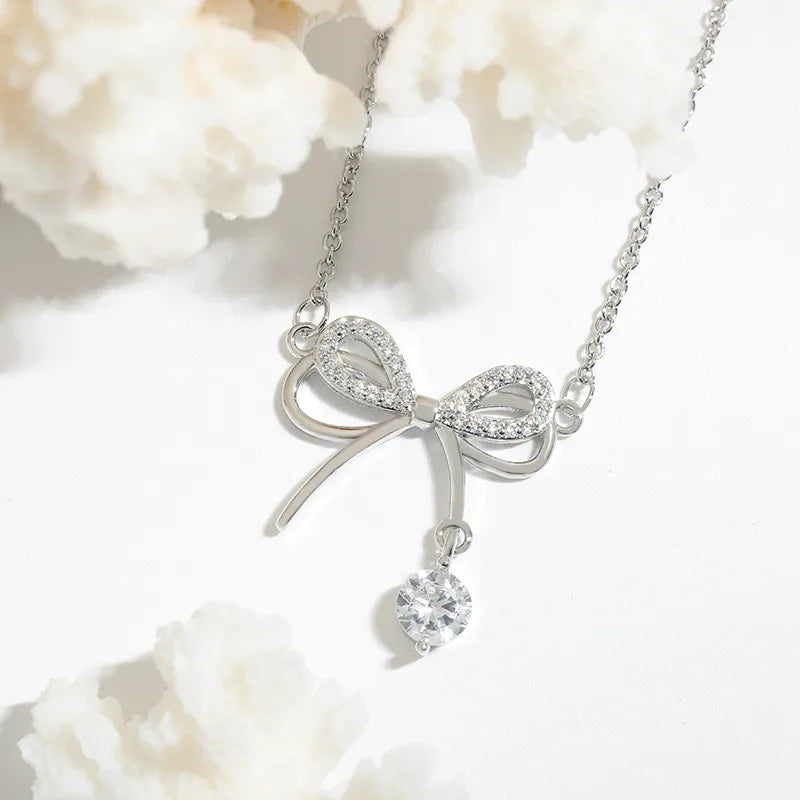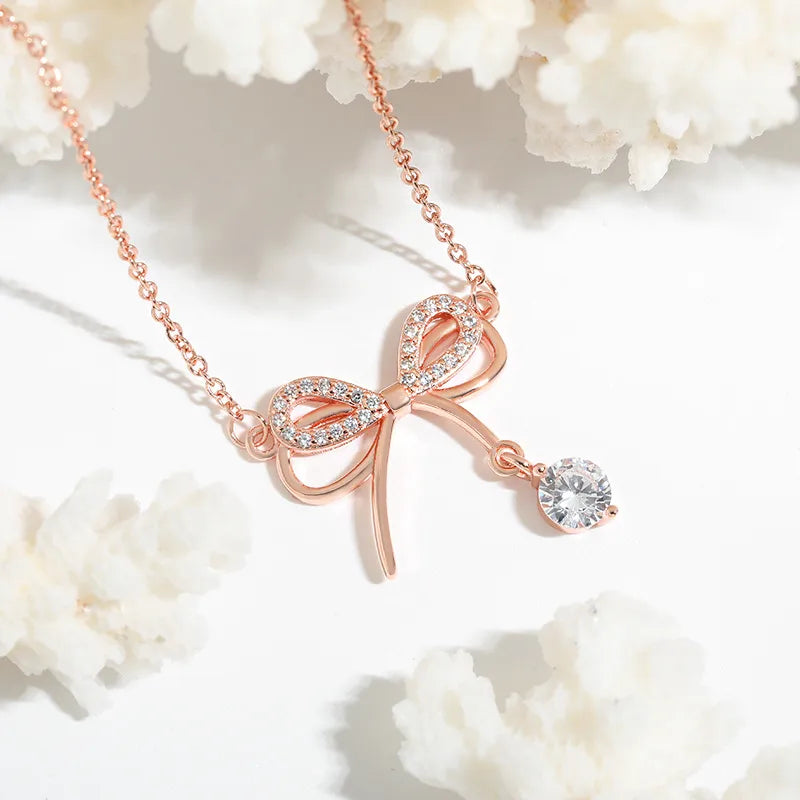 classic style bow knot copper artificial gemstones pendant necklace in bulk