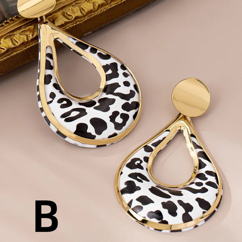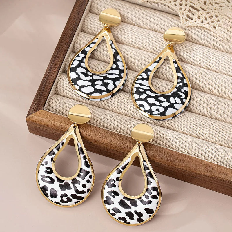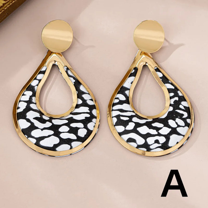 Classic Style Shiny Black and White Color Matching Ferroalloy Drop Earrings