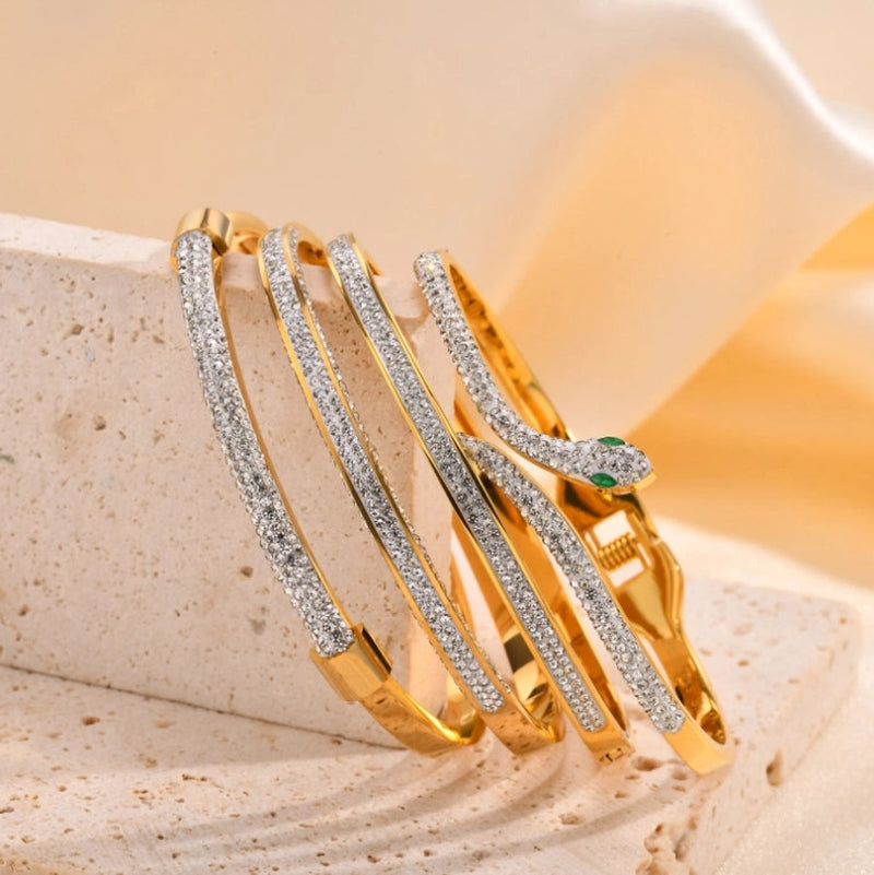Classic Style Solid Color 304 Stainless Steel 18K Gold Plated Bangle In Bulk