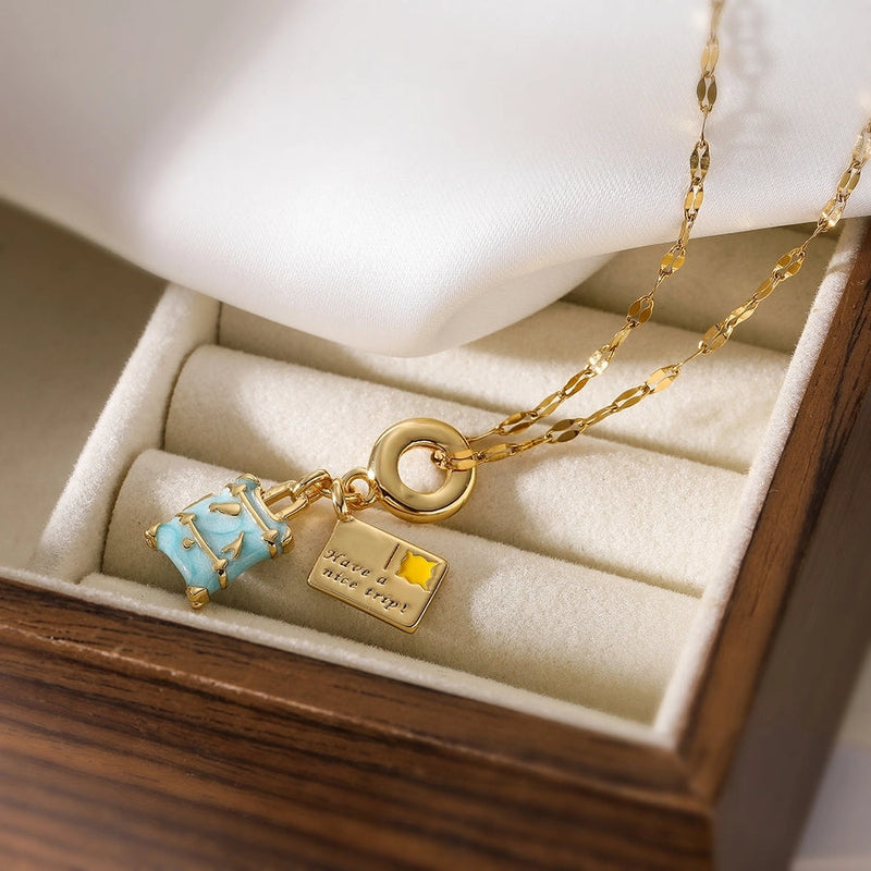 Copper 18K Gold Plated Enamel Geometric Pendant Necklace