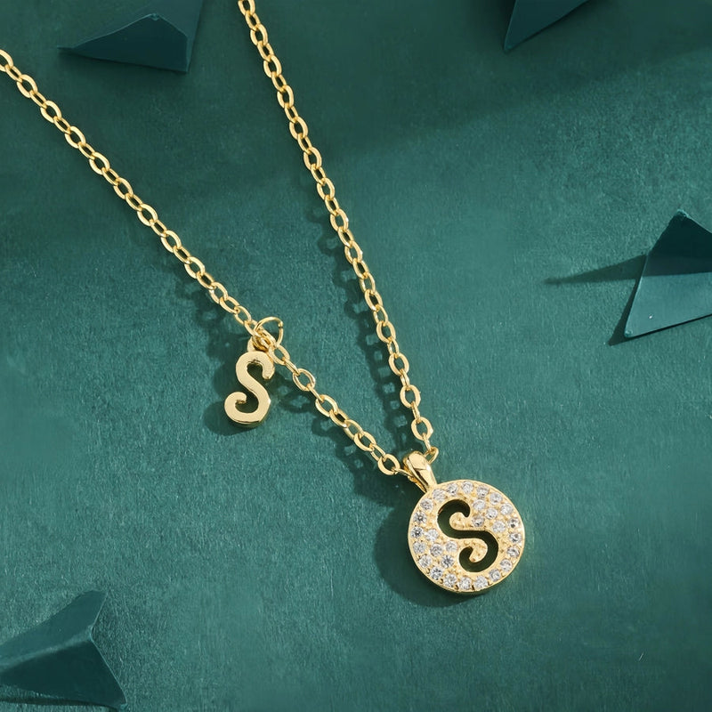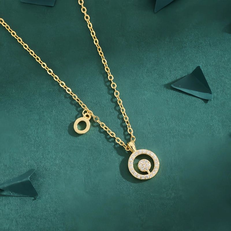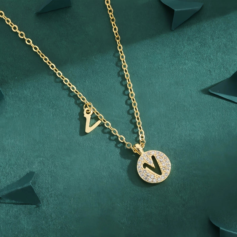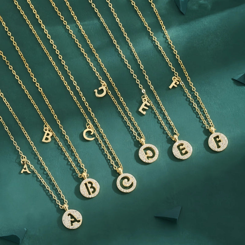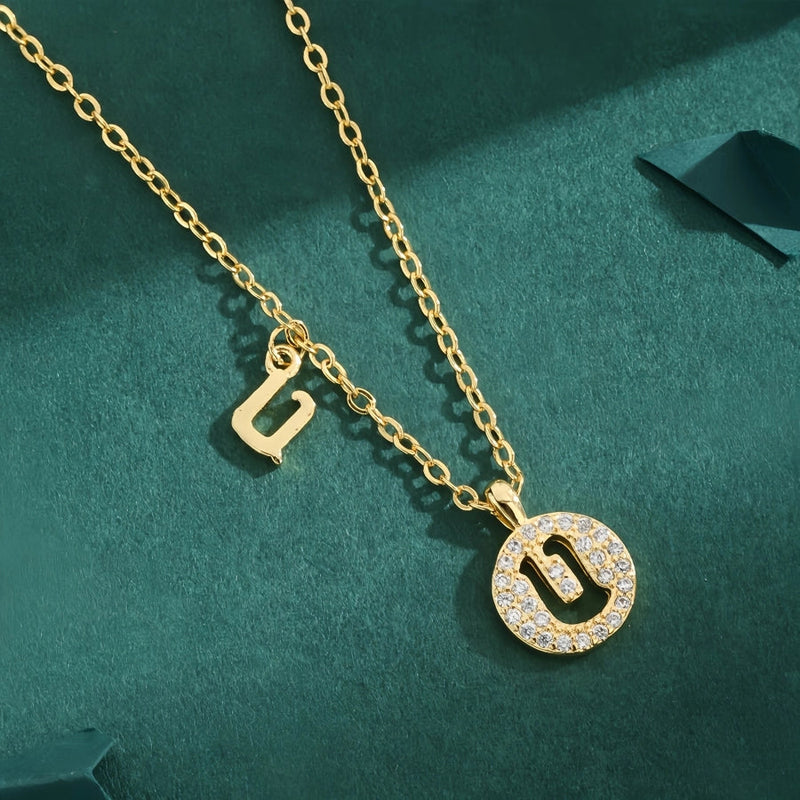 Copper 18K Gold Plated Inlay Letter Zircon Pendant Necklace