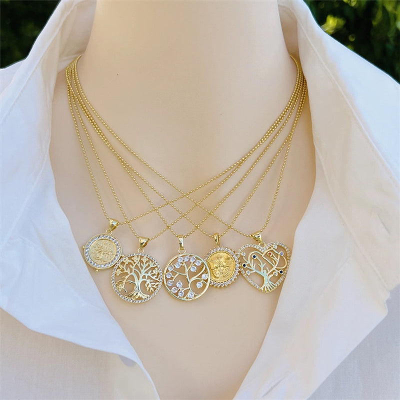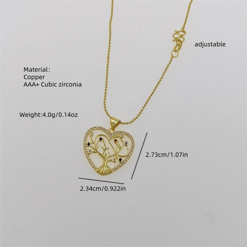 Copper 18K Gold Plated Inlay Round Heart Shape Life Tree Zircon Pendant Necklace