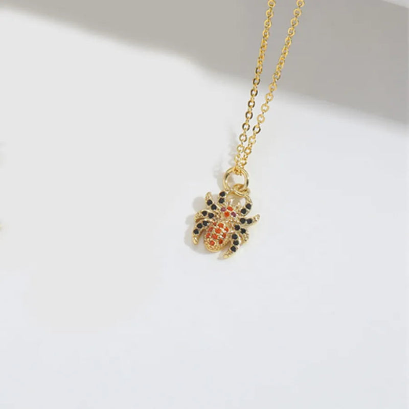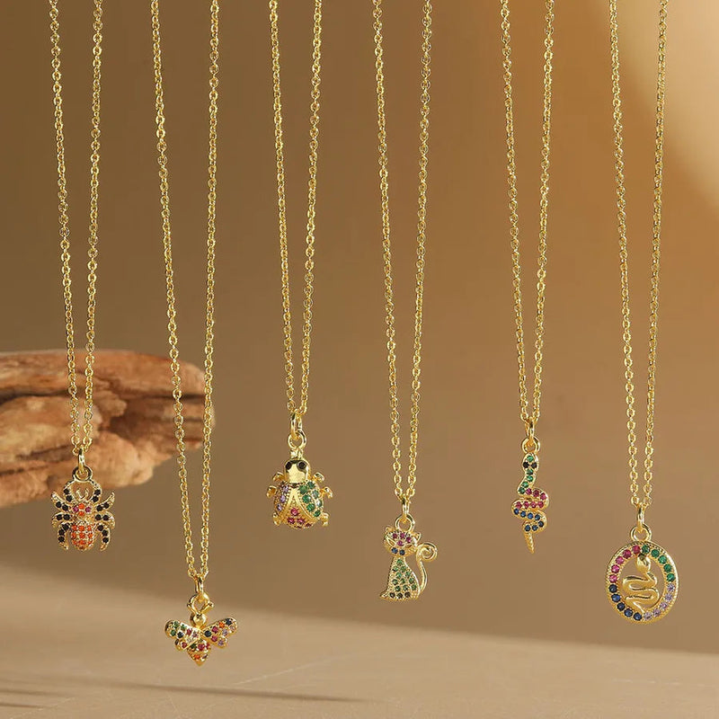 Copper cable chain 14K Gold Plated Cat Snake Spider Zircon Pendant Necklace