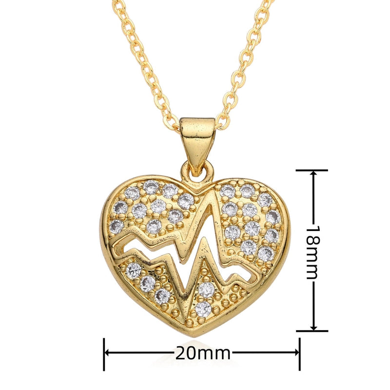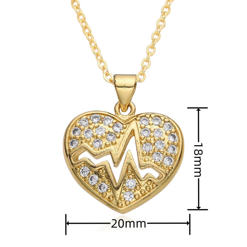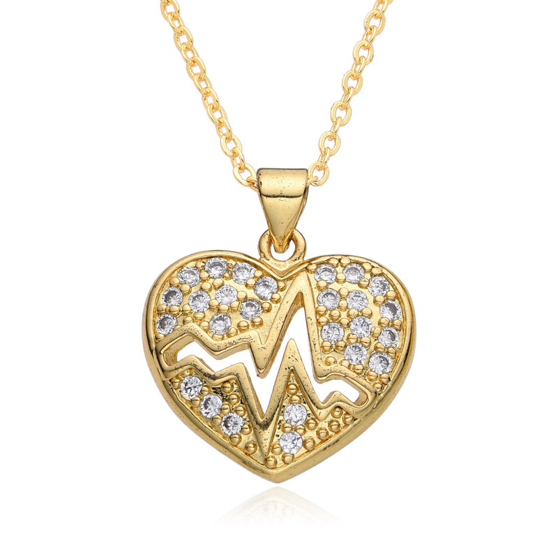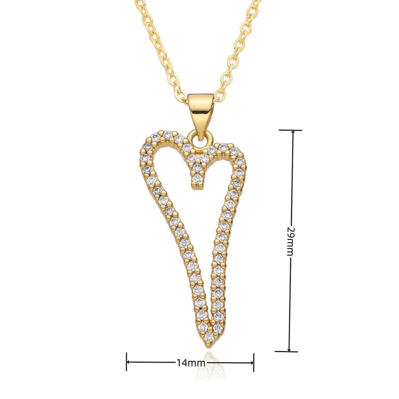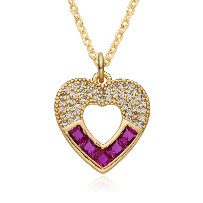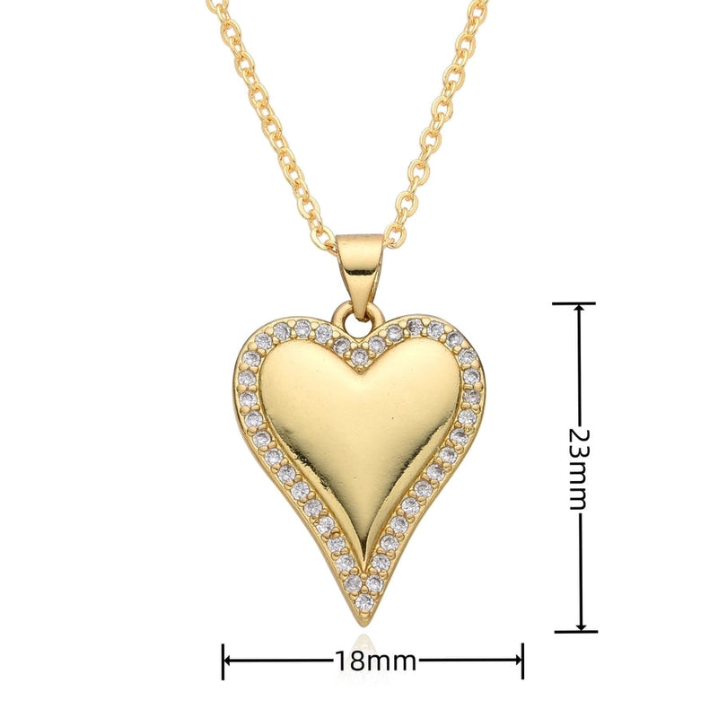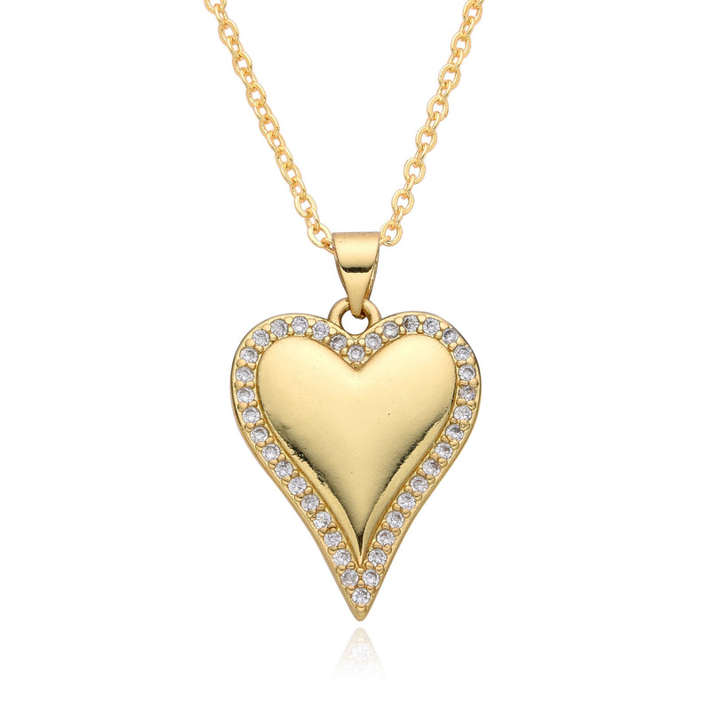 Copper Inlay Heart Shape Zircon Pendant Necklace